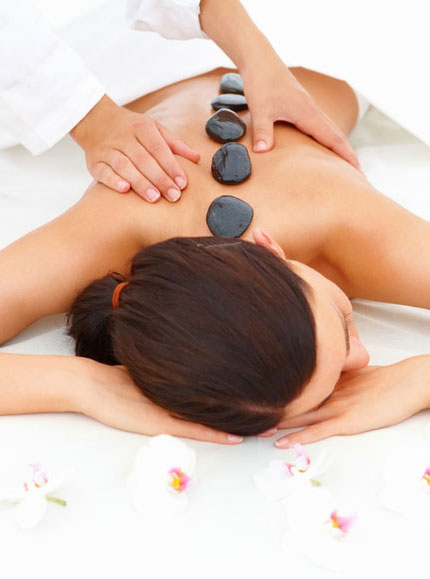 Masaje con Piedras Calientes: Técnica de masaje que se acompaña de piedras especiales que se calientan previamente y ayudan a relajar la musculatura por el calor que irradian. Se pueden utilizar en maniobras o poner las piedras sobre puntos específicos del cuerpo.